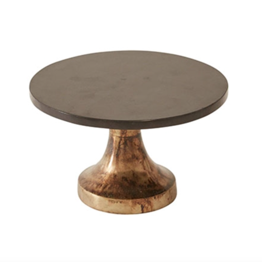 Assiette à gâteau sur pied, marbre noir et or antique Caravage
