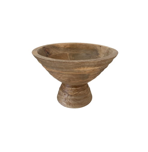 Description: Ce bol sur pied en bois de manguier magnifiquement patiné apporte texture et chaleur à vos espaces lounge ou étagères. Avec son design strié et sa finition naturelle, il s’intègre parfaitement dans un décor rustique moderne, nordique ou à la californienne. Polyvalent et décoratif, il peut être utilisé pour mettre en valeur des fleurs séchées ou des fruits, ou être simplement utilisé tel quel, ajoutant une touche d'élégance organique à tout événement. Son esthétique intemporelle et sa durabilité en font un choix incontournable pour un stylisme raffiné et texturé.
