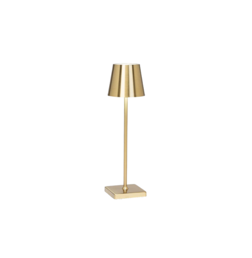 Description: Cette lampe à DEL rechargeable combine une silhouette effilée et contemporaine à une finition laiton chaleureuse.