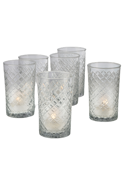 Son design délicatement texturé capte la lueur des bougies et crée un jeu d’ombres et de reflets subtils, parfait pour une ambiance feutrée et sophistiquée. Polyvalent, il peut être utilisé comme photophore pour accueillir une bougie chauffe-plat ou détourné en petit vase pour des arrangements floraux délicats.