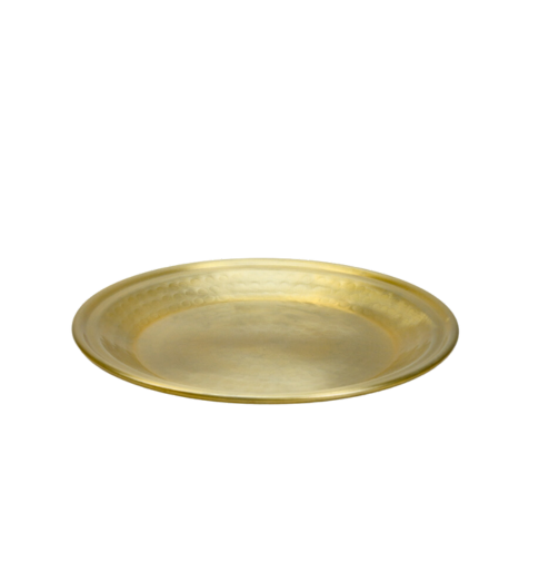 Description: Ce plateau en aluminium doré de 12 pouces, au fini martelé, apporte une touche d’élégance et de raffinement à tout décor de table.