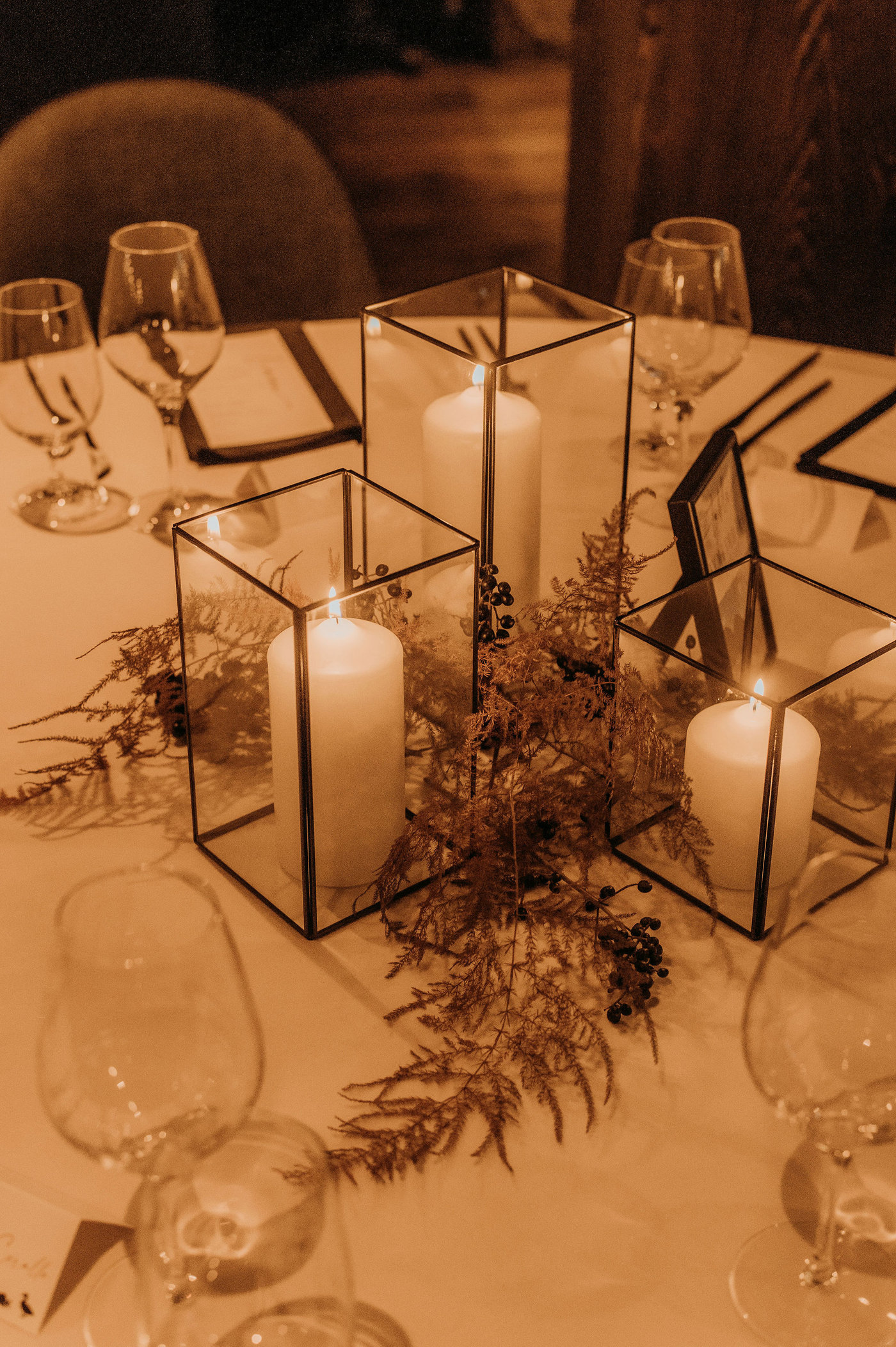 Superbes seules ou accompagnées de bougies chauffe-plat, de chandelles LED ou de petits arrangements floraux, ces lanternes rehaussent la décoration d'un mariage, d'un gala ou d'un souper corporatif. Leur format varié ajoute de la dimension sans obstruer la vue des invités.
