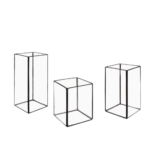 Description: Apportez une touche de raffinement à votre événement avec le trio de lanternes Andrée. Composé de trois lanternes en verre transparent aux lignes épurées et à la bordure métallique noire, cet ensemble minimaliste est parfait pour créer un centre de table moderne, romantique ou industriel chic.